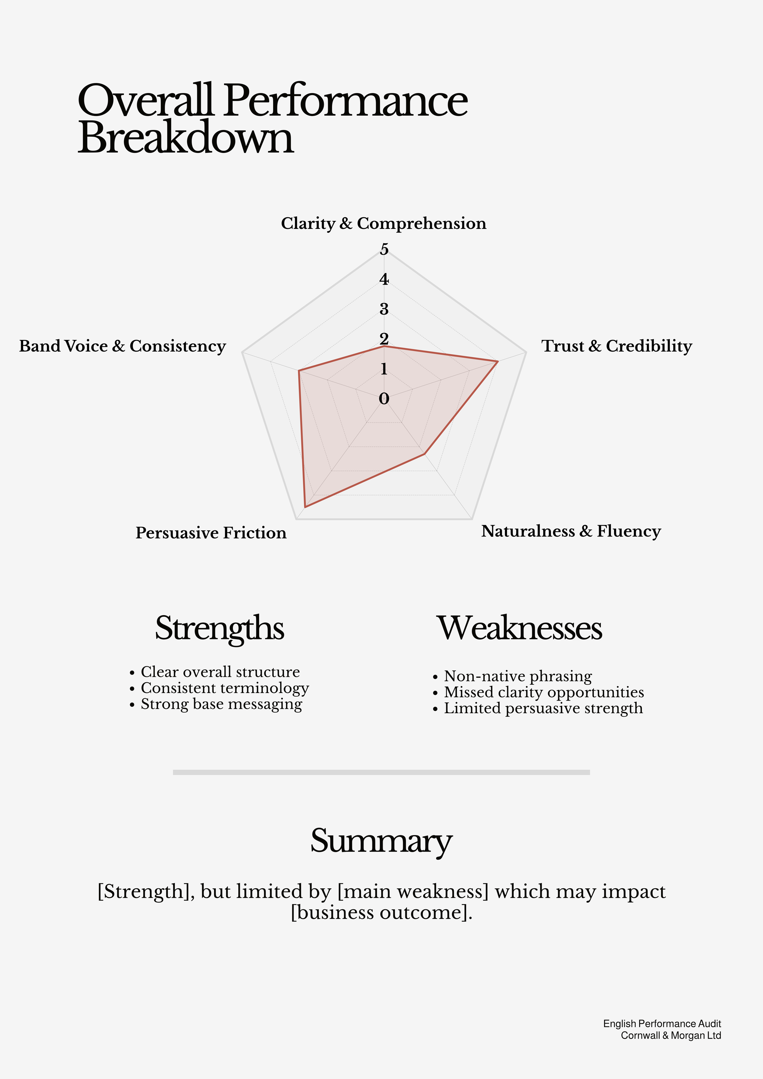 A focused, high-level evaluation of how your English is currently performing.
