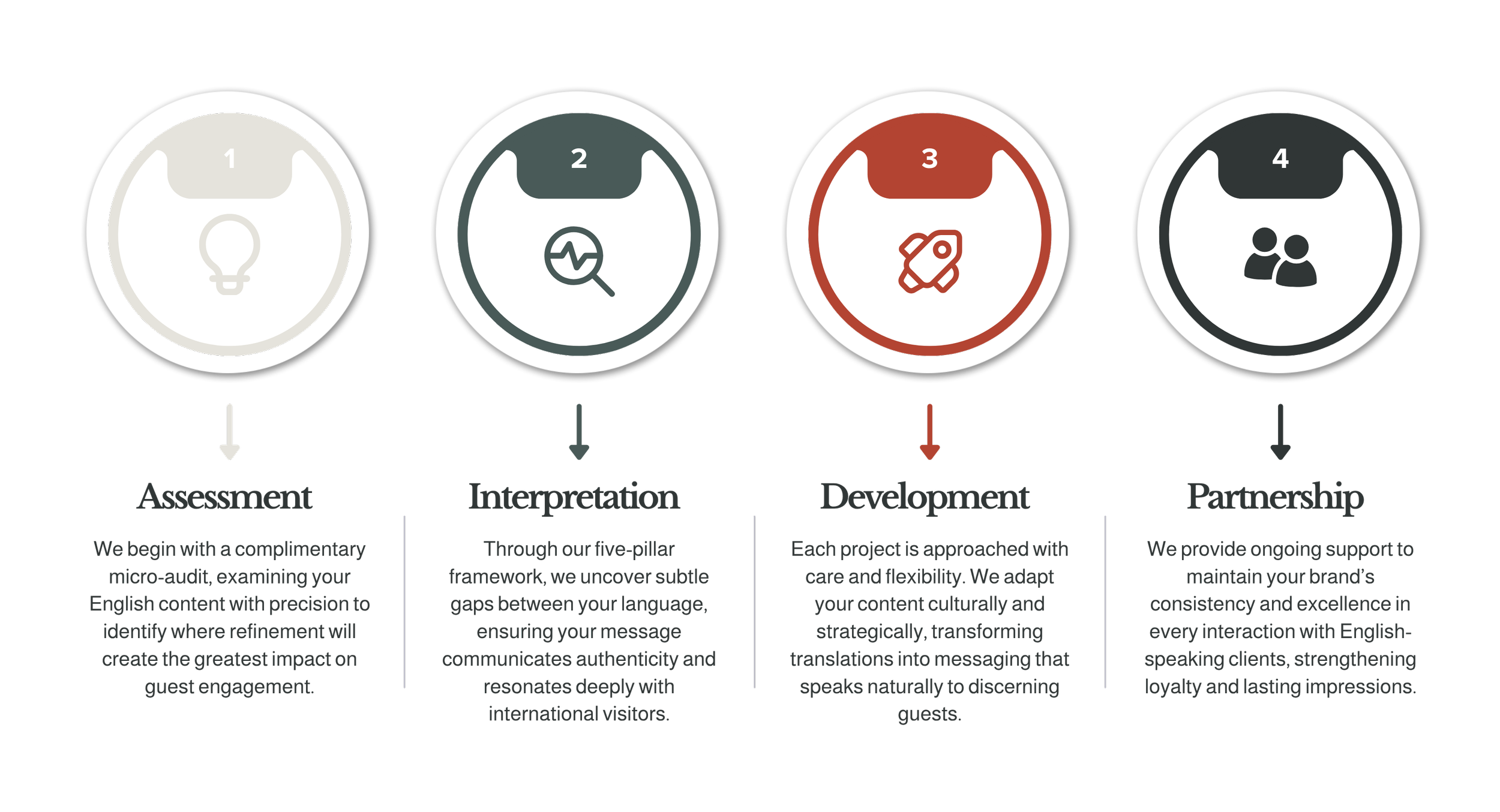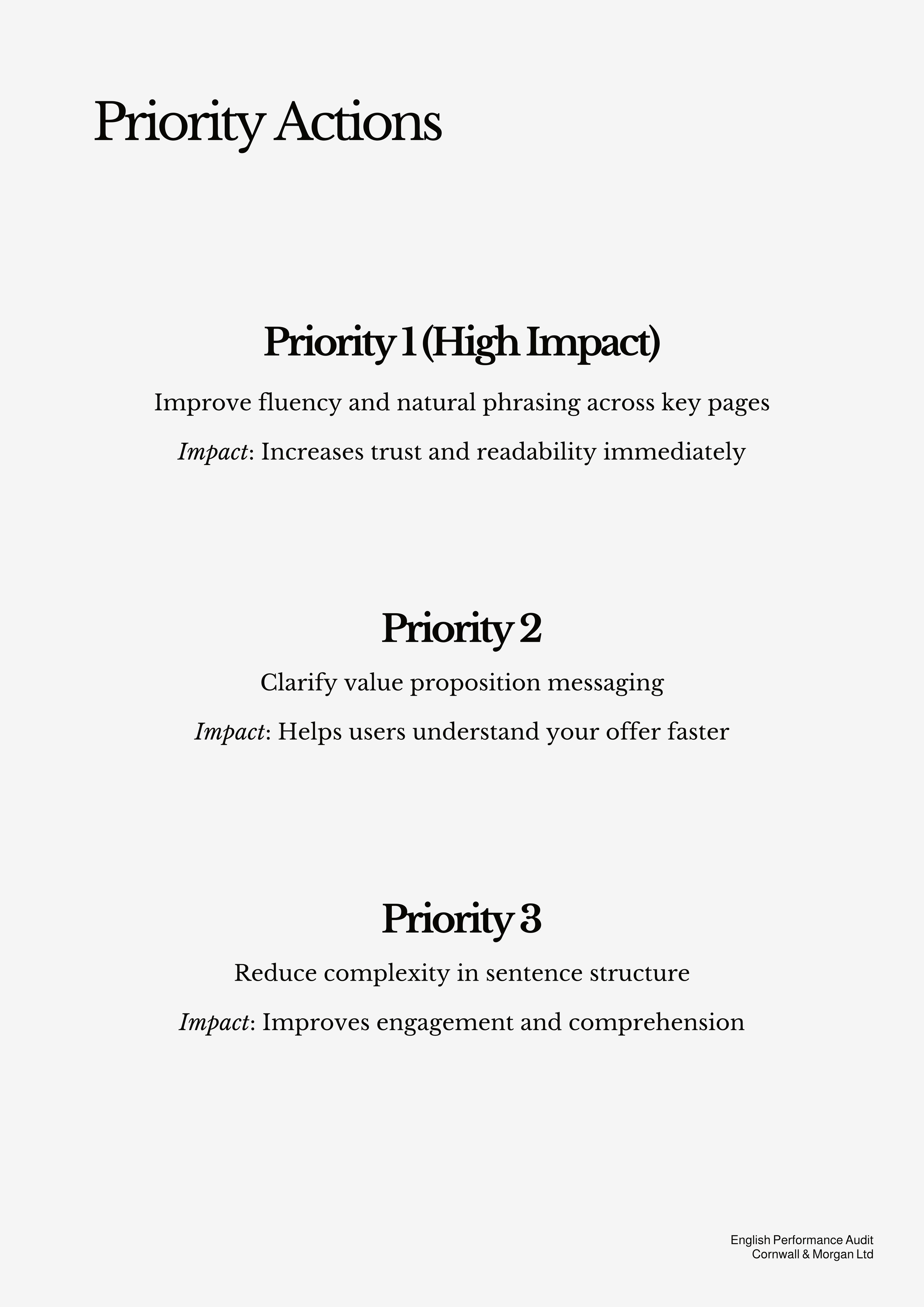 We refine your English across key touchpoints, ensuring it feels natural, consistent, and aligned with the expectations of an international audience.