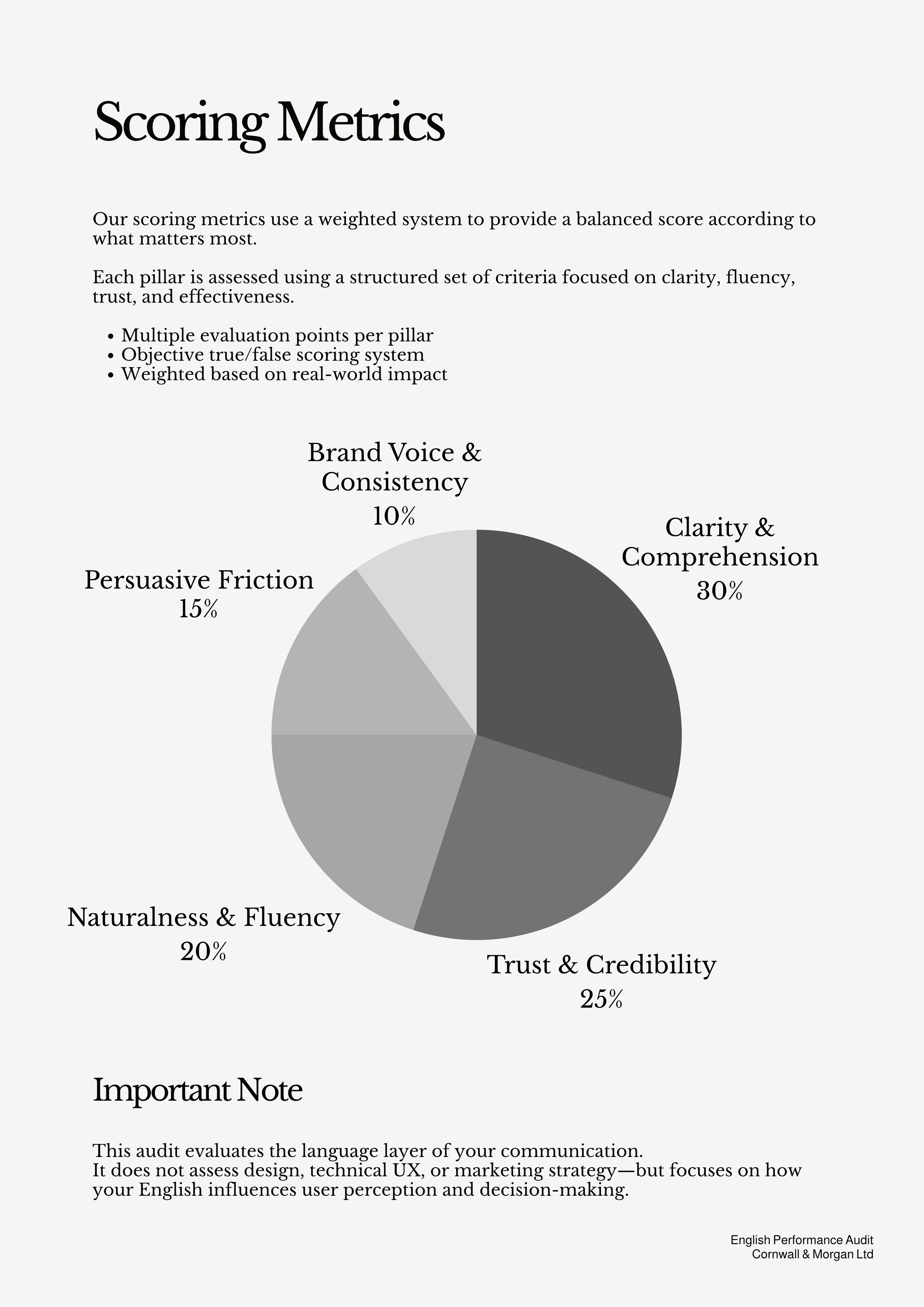 You receive a clear performance score and insight into where language may be creating hesitation or limiting conversion.