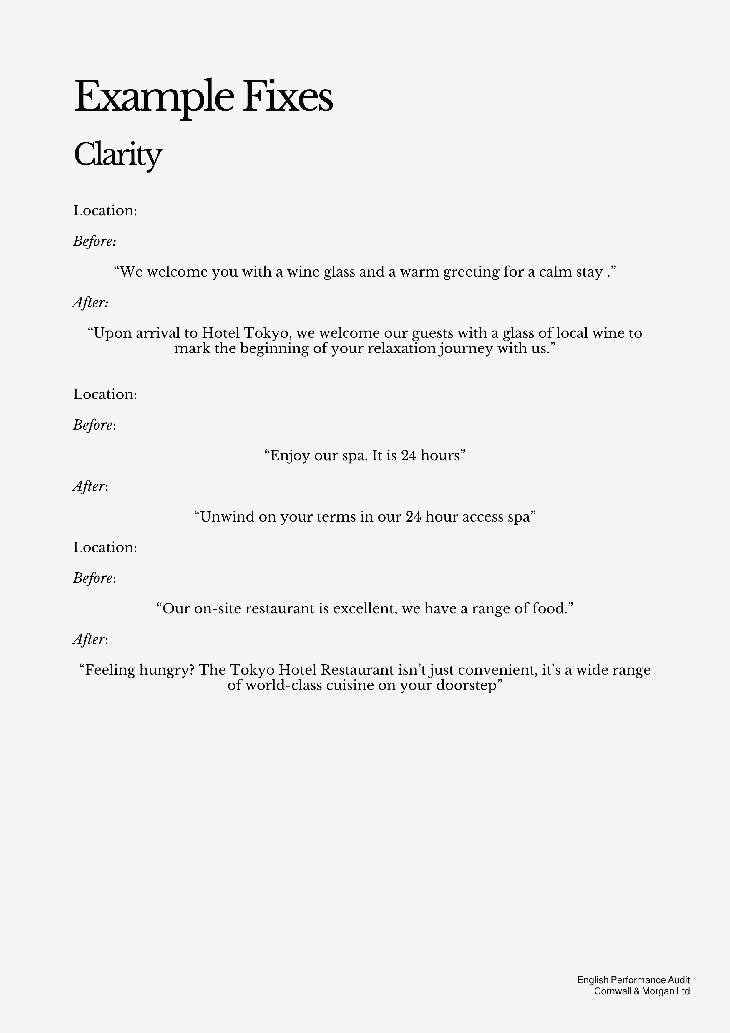 We identify patterns, inconsistencies, and missed opportunities across your guest-facing content—forming a precise foundation for improvement.